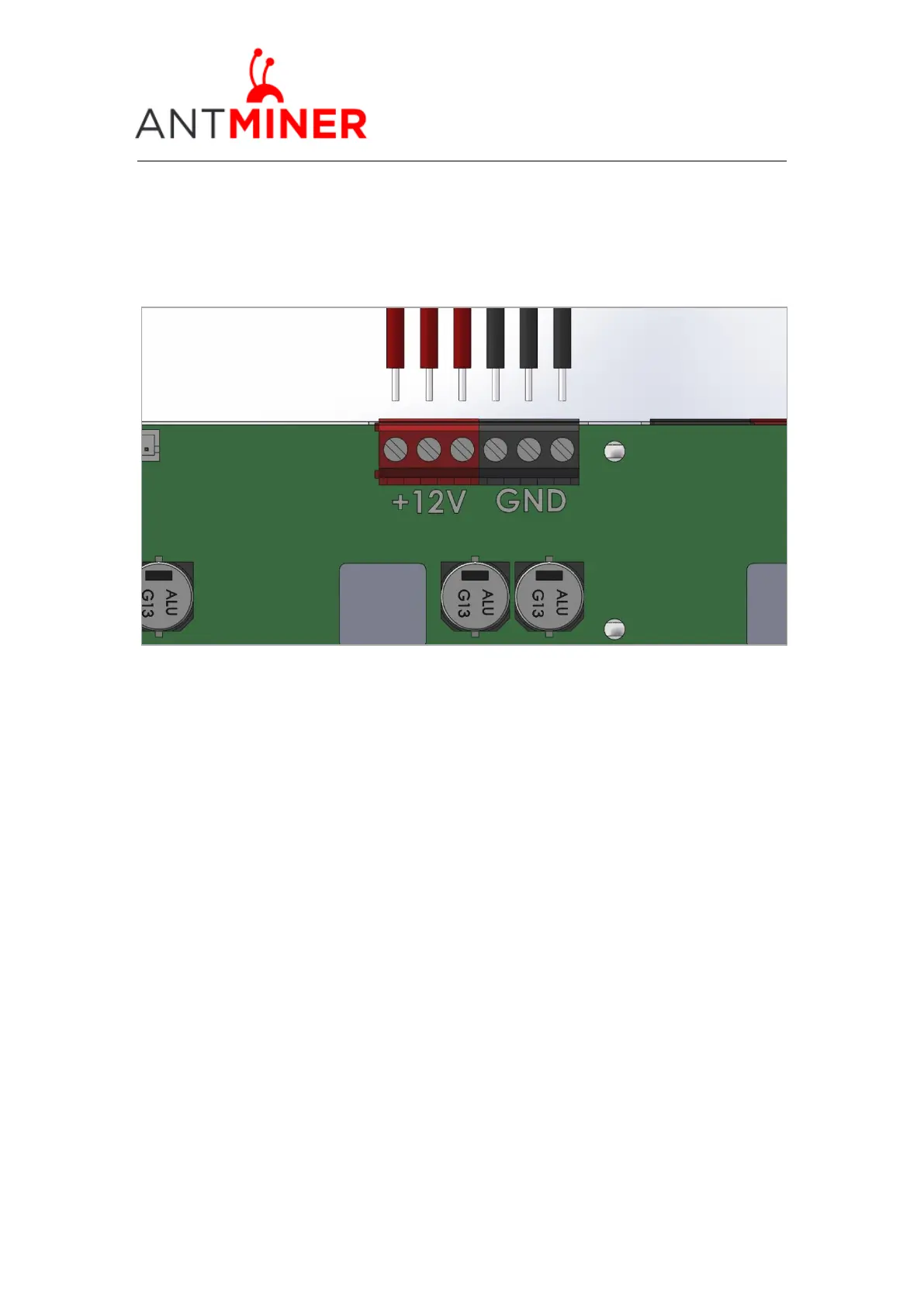 Connect the 12V Power line to the Power Supply socket. Note not to reverse positive (+12V) to