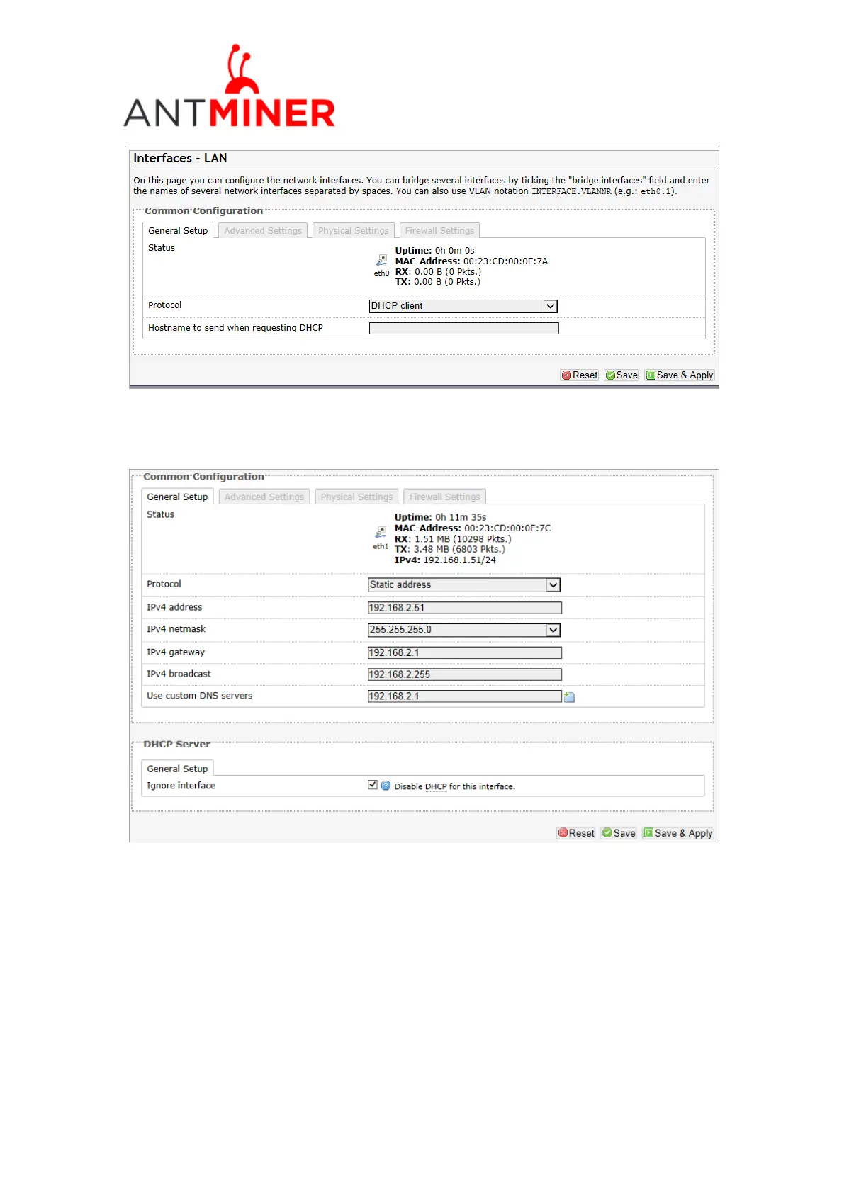 different network segment with WAN. The LAN of new version of antMiner will be set to
