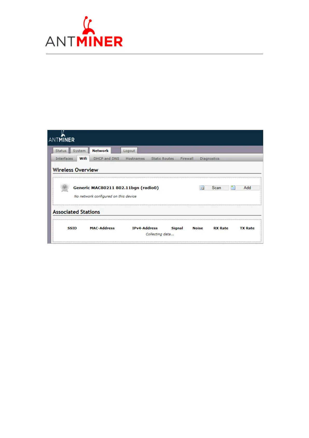 WIFI hot point. Note: Bad WIFI performance will reduce the antminer’s hash rate. You have to