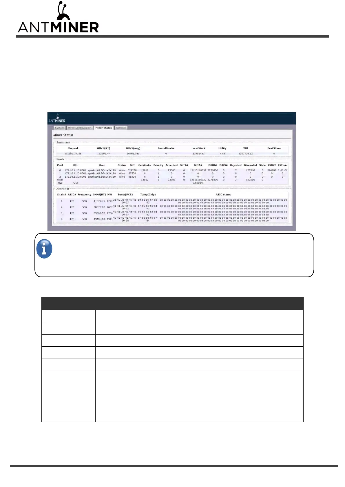 GH/S(RT) Hash rate of each hash board ( GH/s)