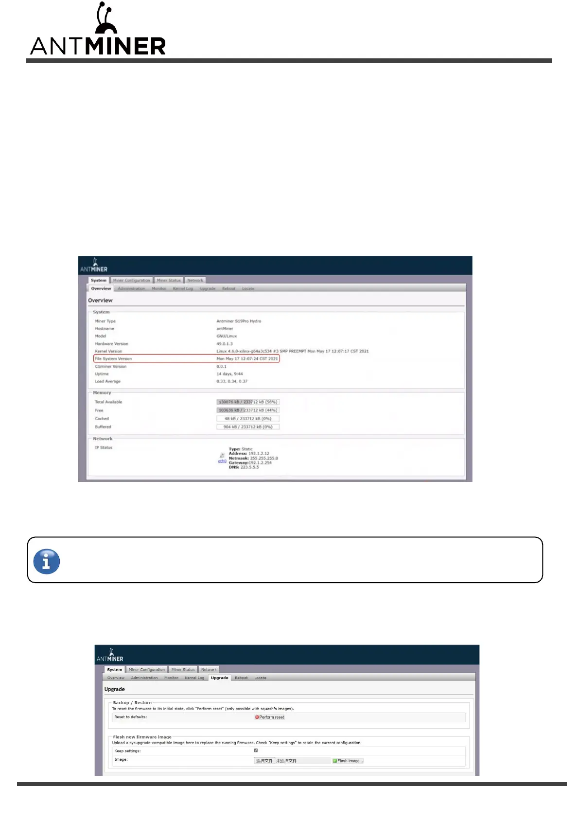 Make sure that the S19 Pro Hydro server remains powered during the upgrade process. If power fails before the