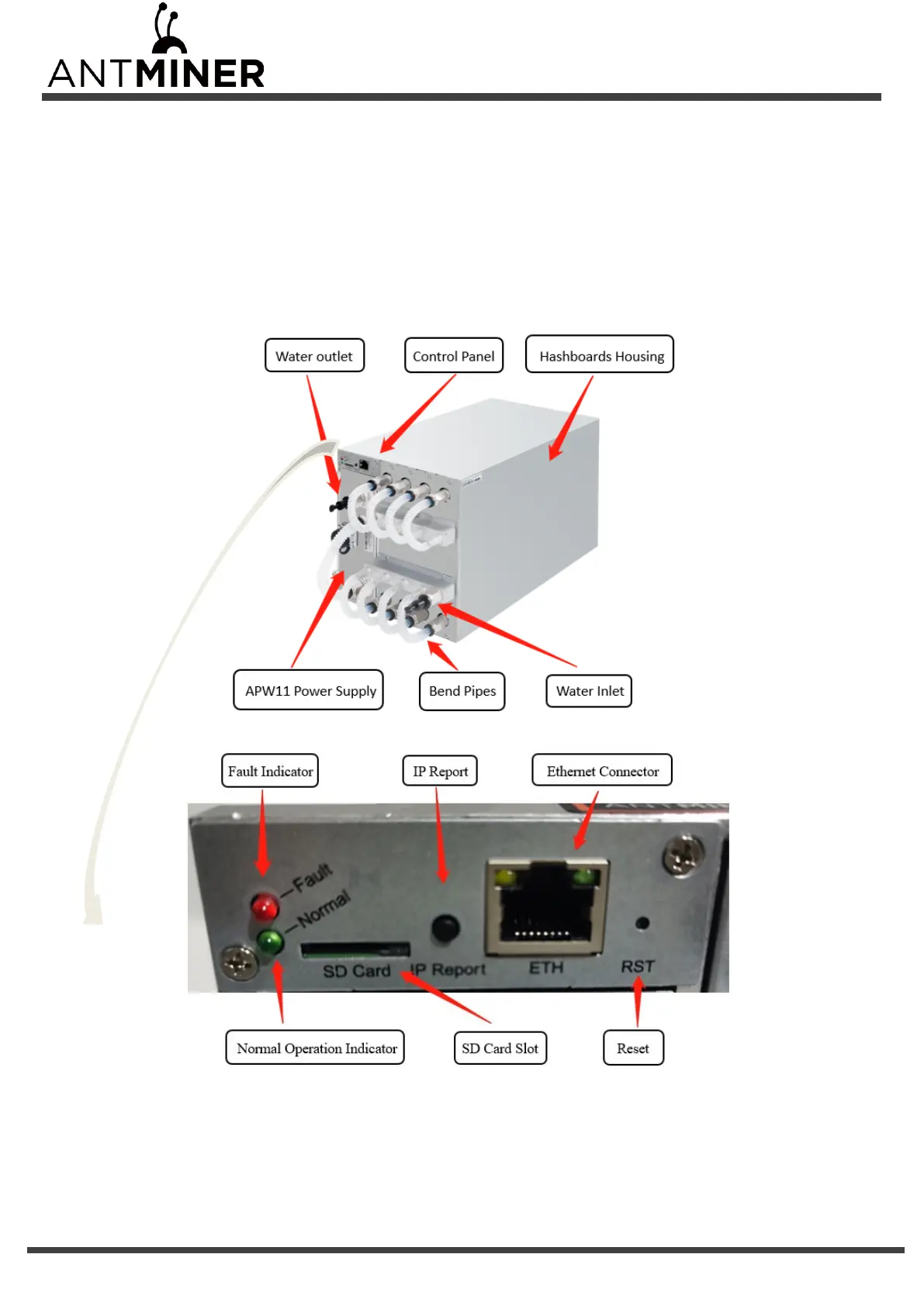 The main components and controller front panel of S19 Pro Hydro servers are shown in the following figure: