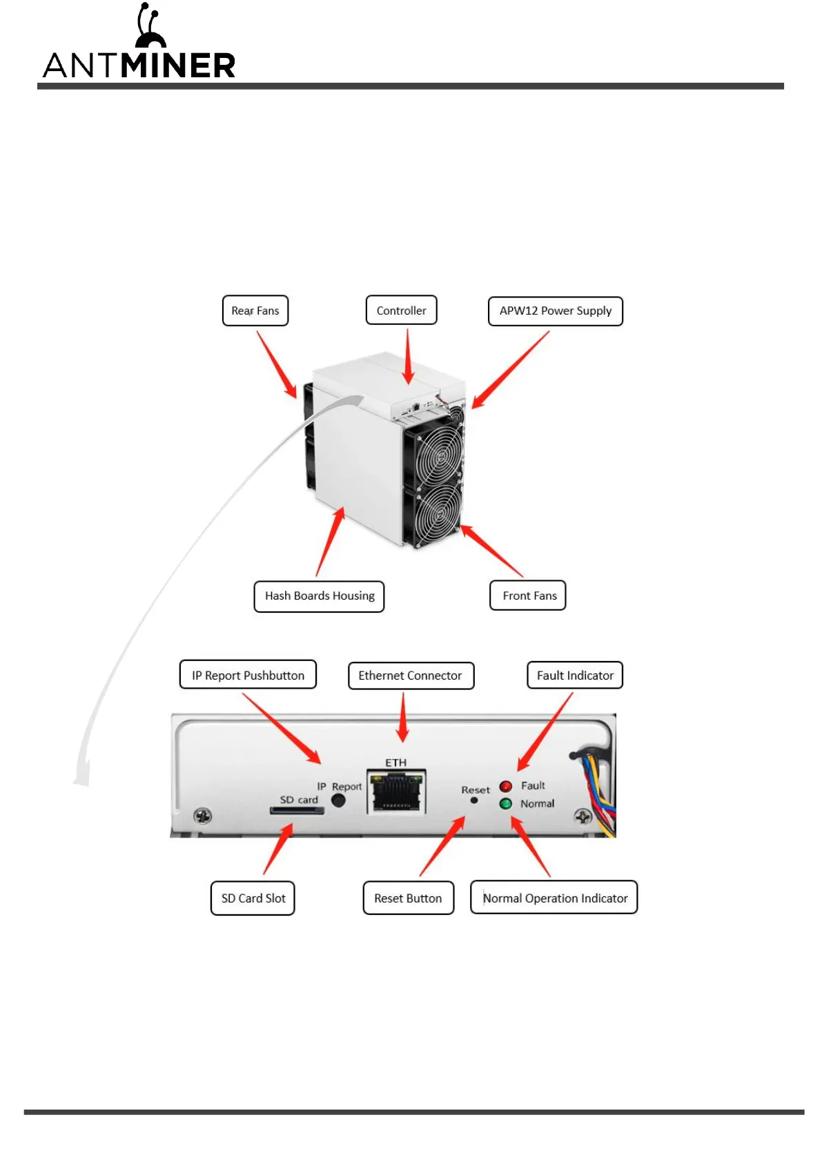 The main components and controller front panel of S19j Pro servers are shown in the following figure: