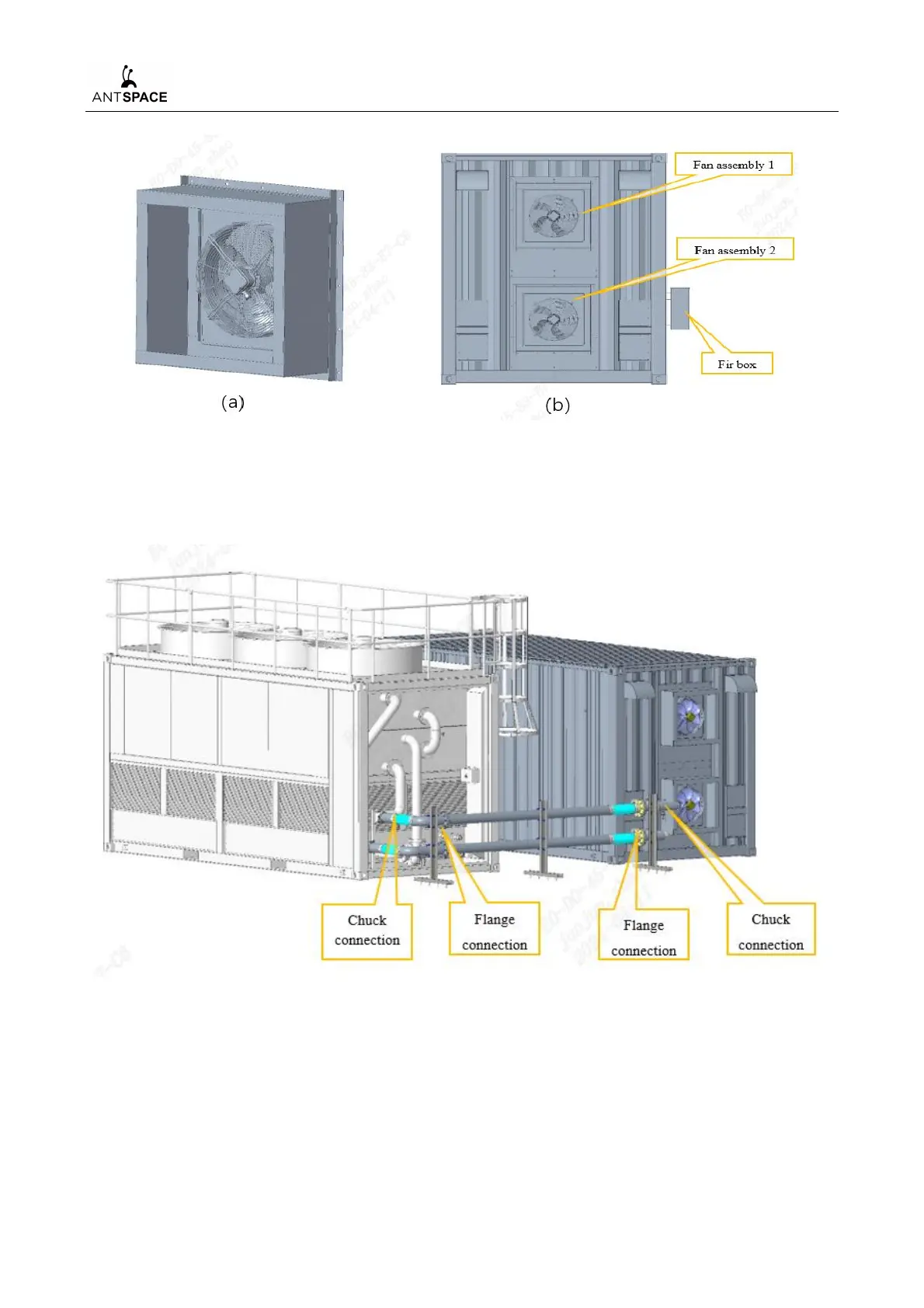 Figure 6-3(a)Schematic diagram of fan assembly(b)Installation diagram of container fans