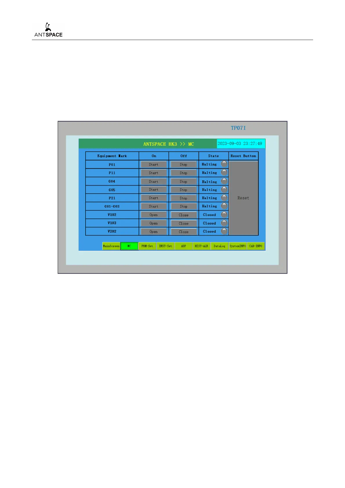 mode to the "MC" position, and then enter the "manual control" screen, as shown in the following