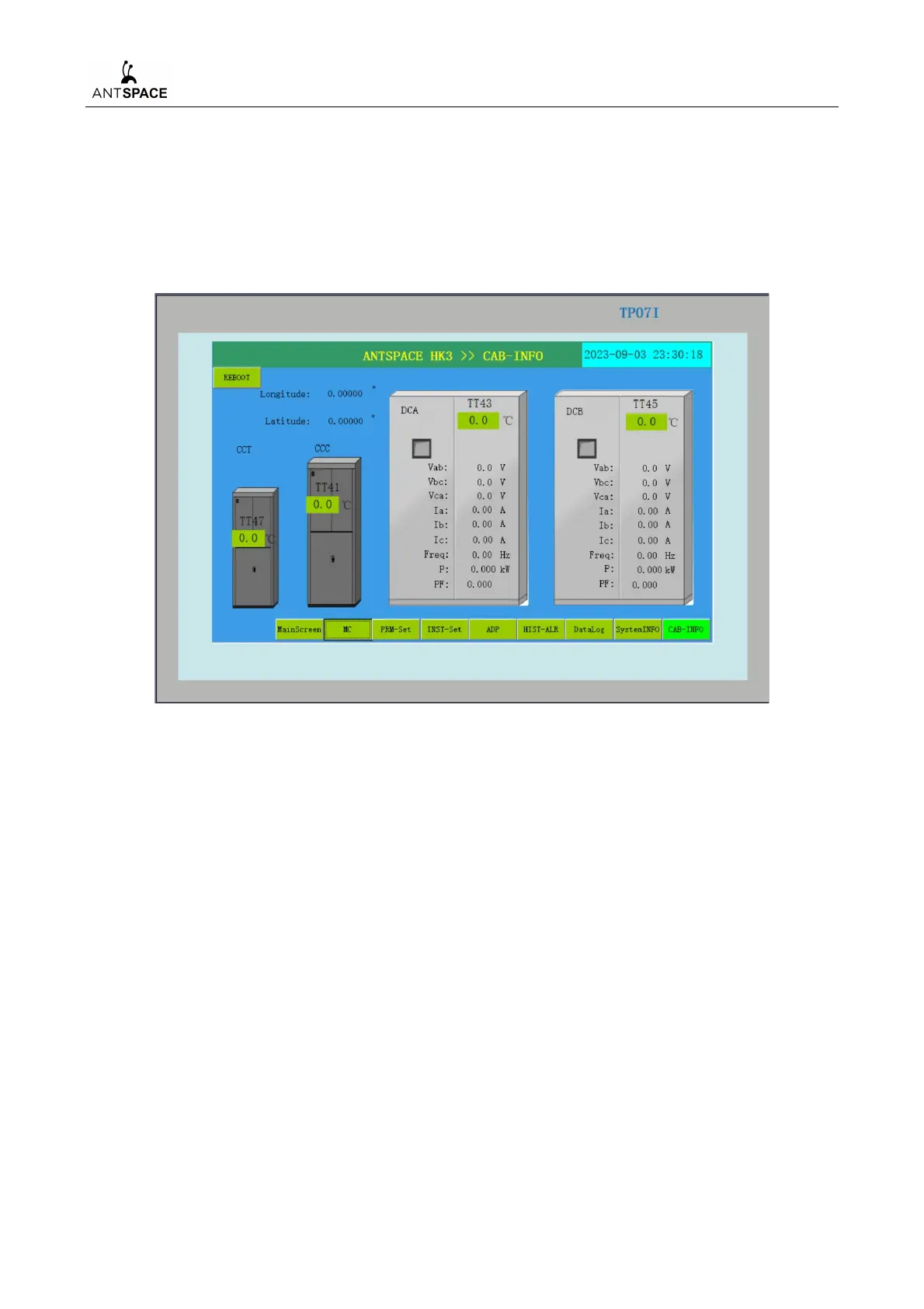 The screen can display the ambient temperature in three cabinets, the power quality information