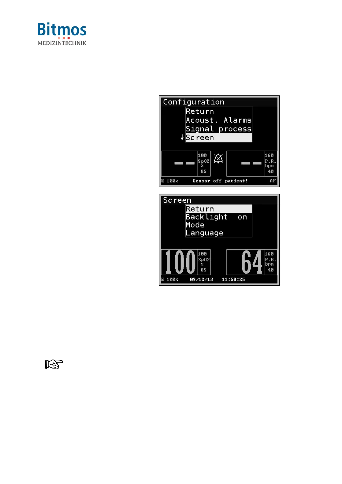 Fig. 38: Screen submenus