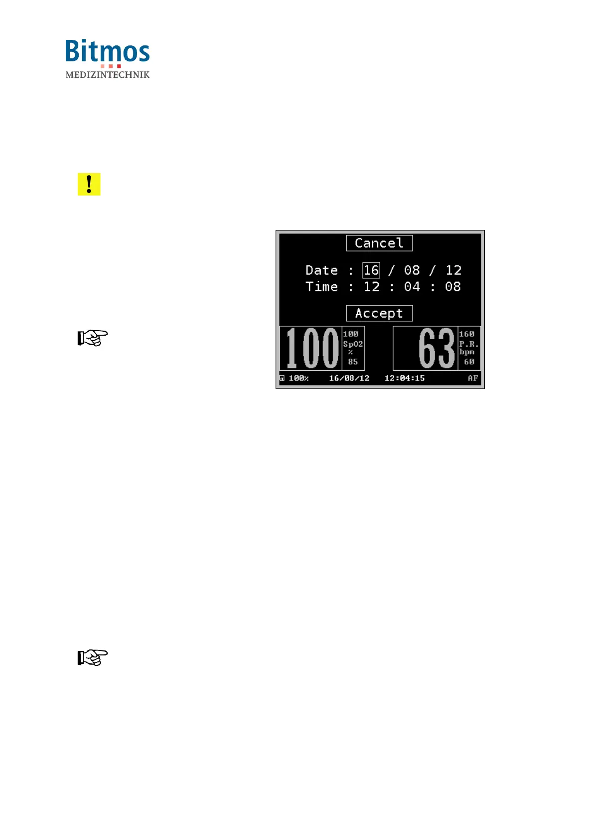 The function sets the date and time of the unit. For a precise analysis of the stored monitoring