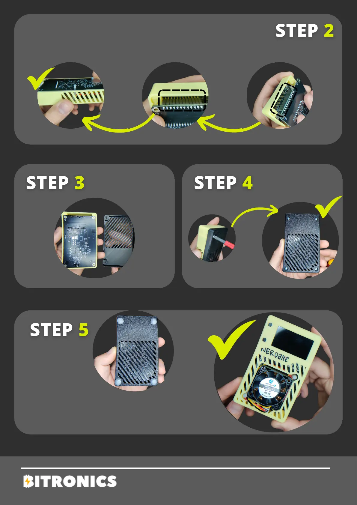 Once the screen is installed, attach the NerdAxe PCB