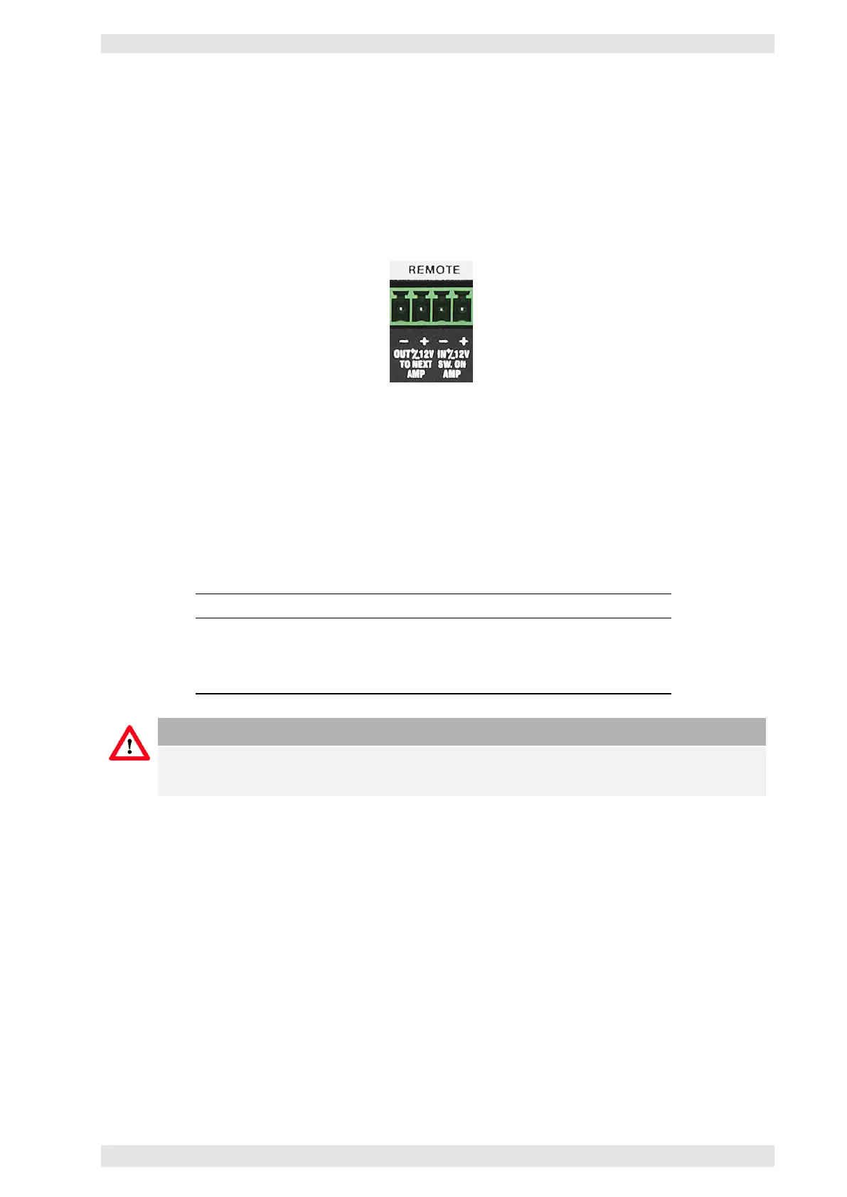 In this mode the PHOENIX terminal block (see picture) is used to remotely power up the amplifier with a