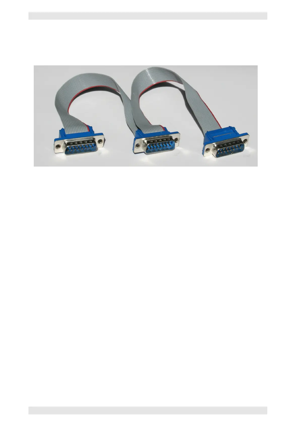 The units are connected with a 15-pin ribbon cable. It is equipped with male Sub-D DB–15 connectors. One