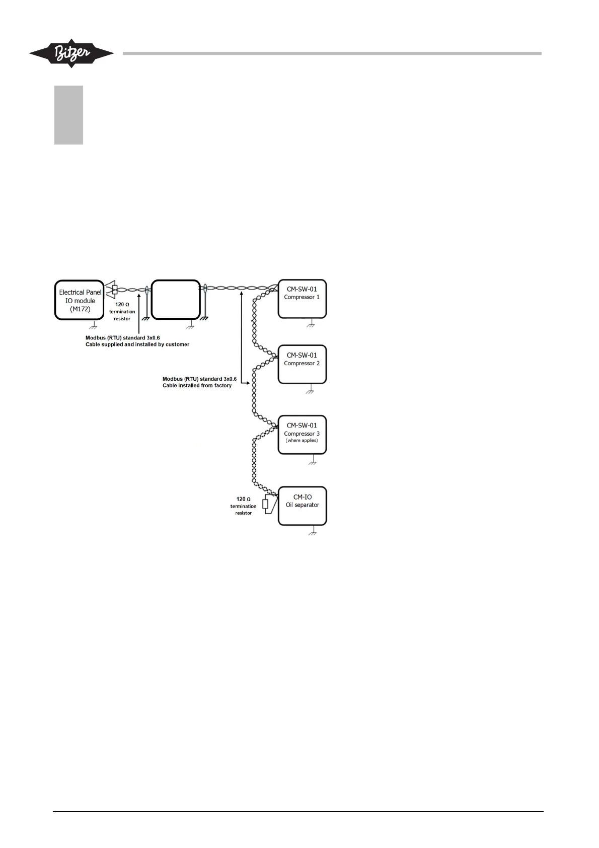 120 Ω end resistor in the oil separator module (CM-IO) if one is present, and fit one in the Modbus RTU