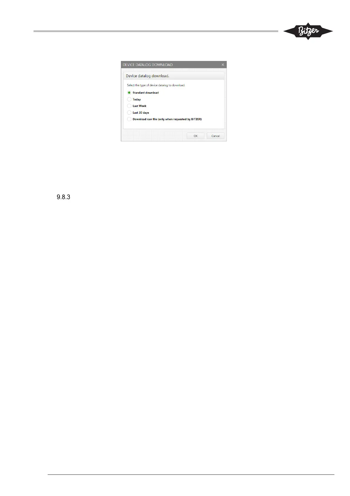 3. Select the type of datalog to be downloaded. Standard download is normally used.