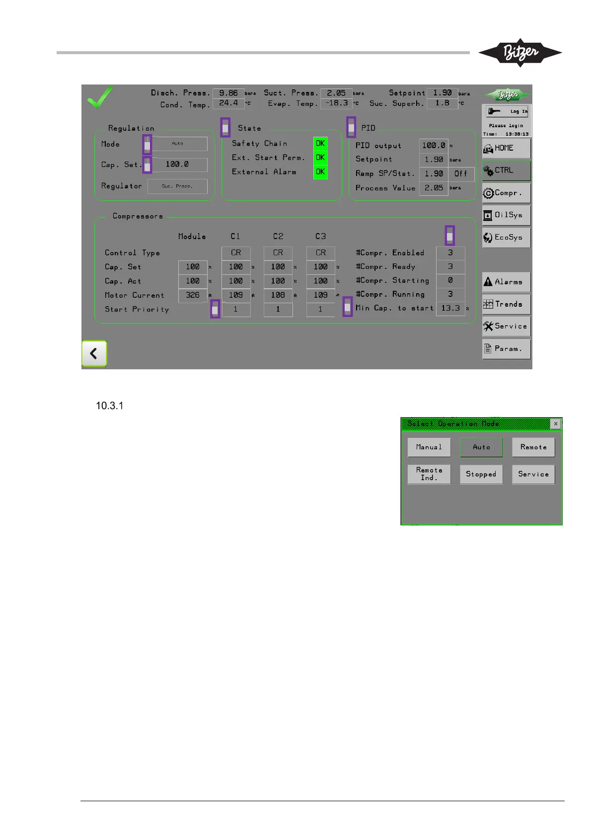the CTRL screen [7]. The last compressor will only stop when the requested capacity is below 1/3 of the