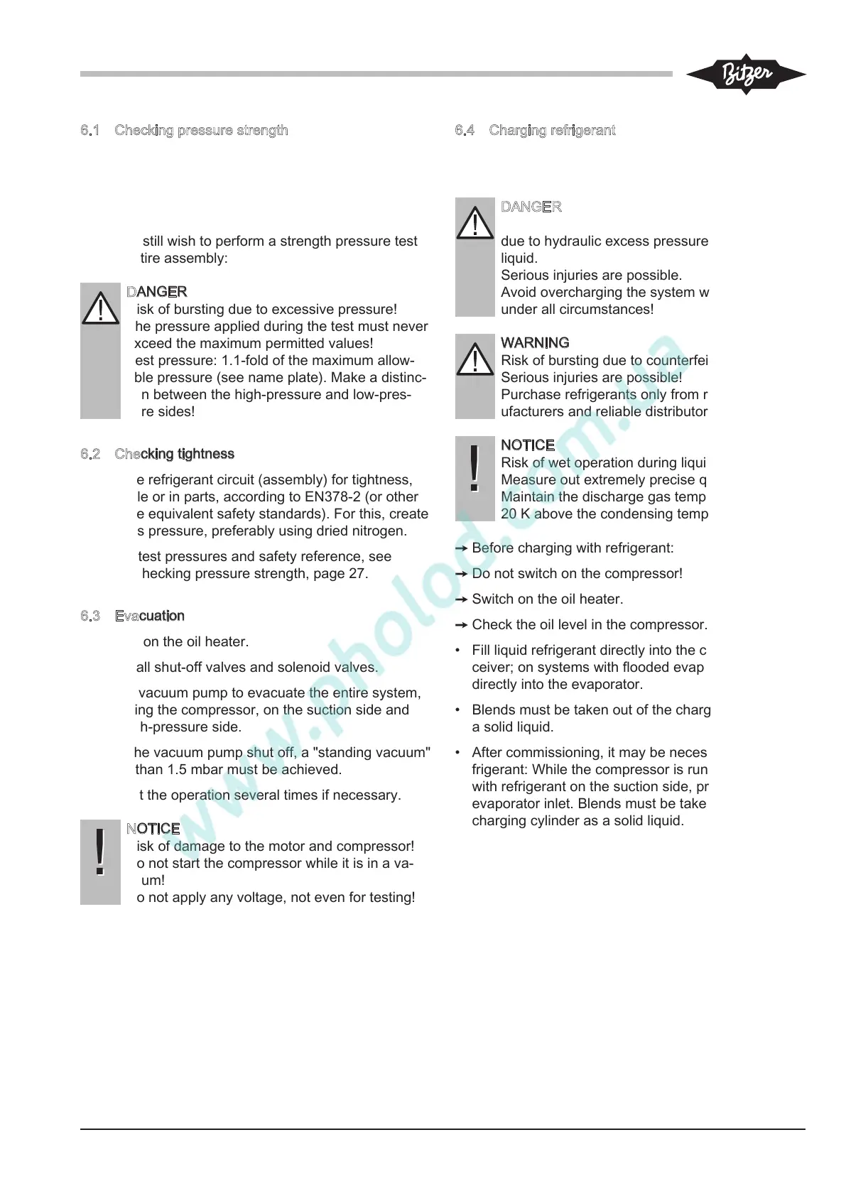 6.1 Checking pressure strength