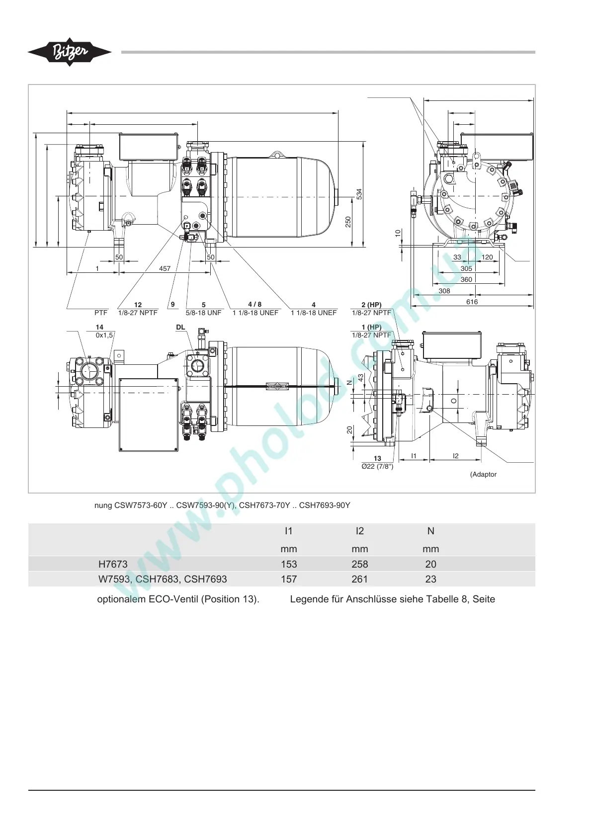 Darstellung mit optionalem ECO-Ventil (Position 13). Legende für Anschlüsse siehe Tabelle 8, Seite 56.
