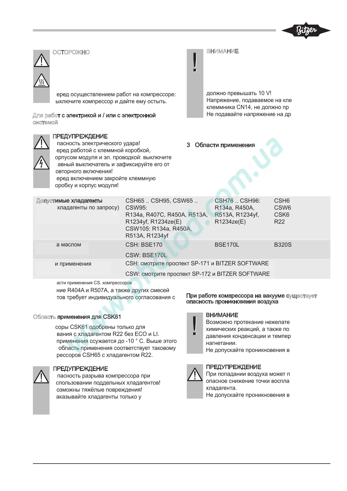 CSW: смотрите проспект SP-172 и BITZER SOFTWARE