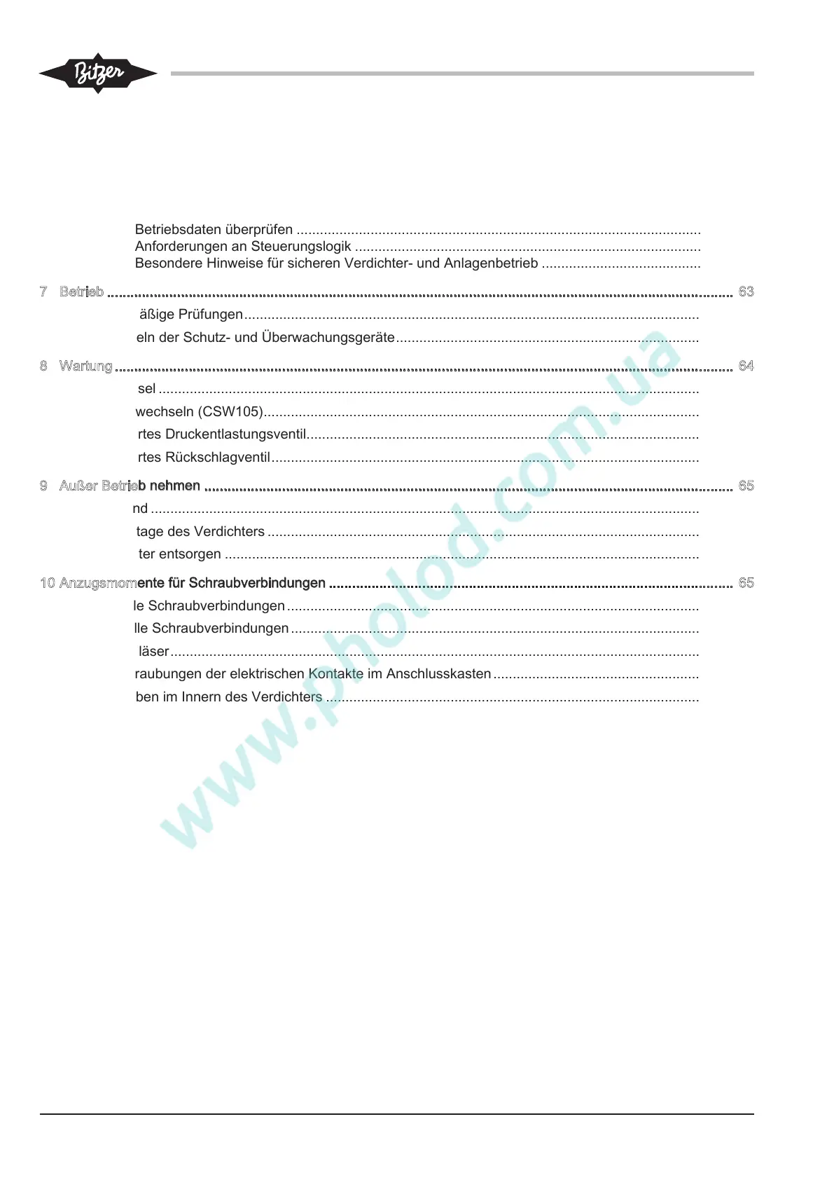 10.5 Schrauben im Innern des Verdichters .........................................................................................................67