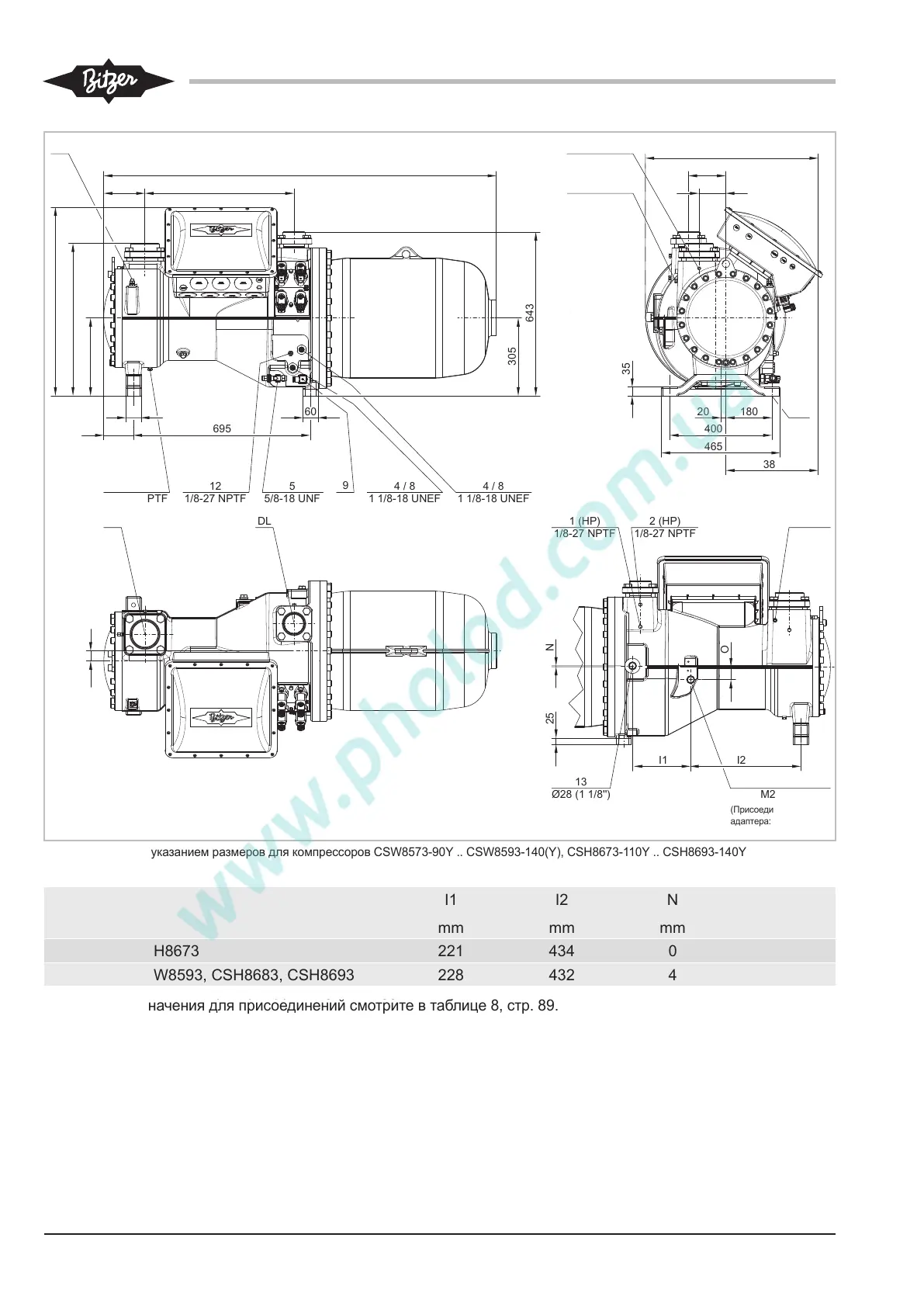 Рис. 14: Чертежи с указанием размеров для компрессоров CSW8573-90Y .. CSW8593-140(Y), CSH8673-110Y .. CSH8693-140Y