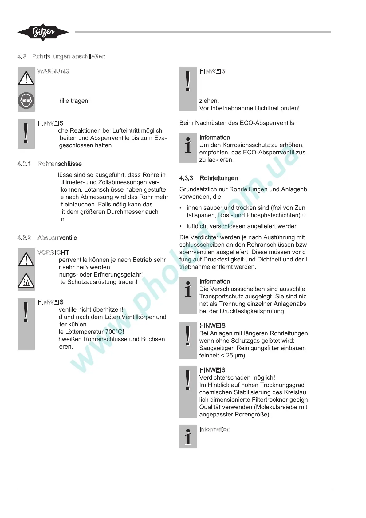 sperrventilen ausgeliefert. Diese müssen vor der Prü-