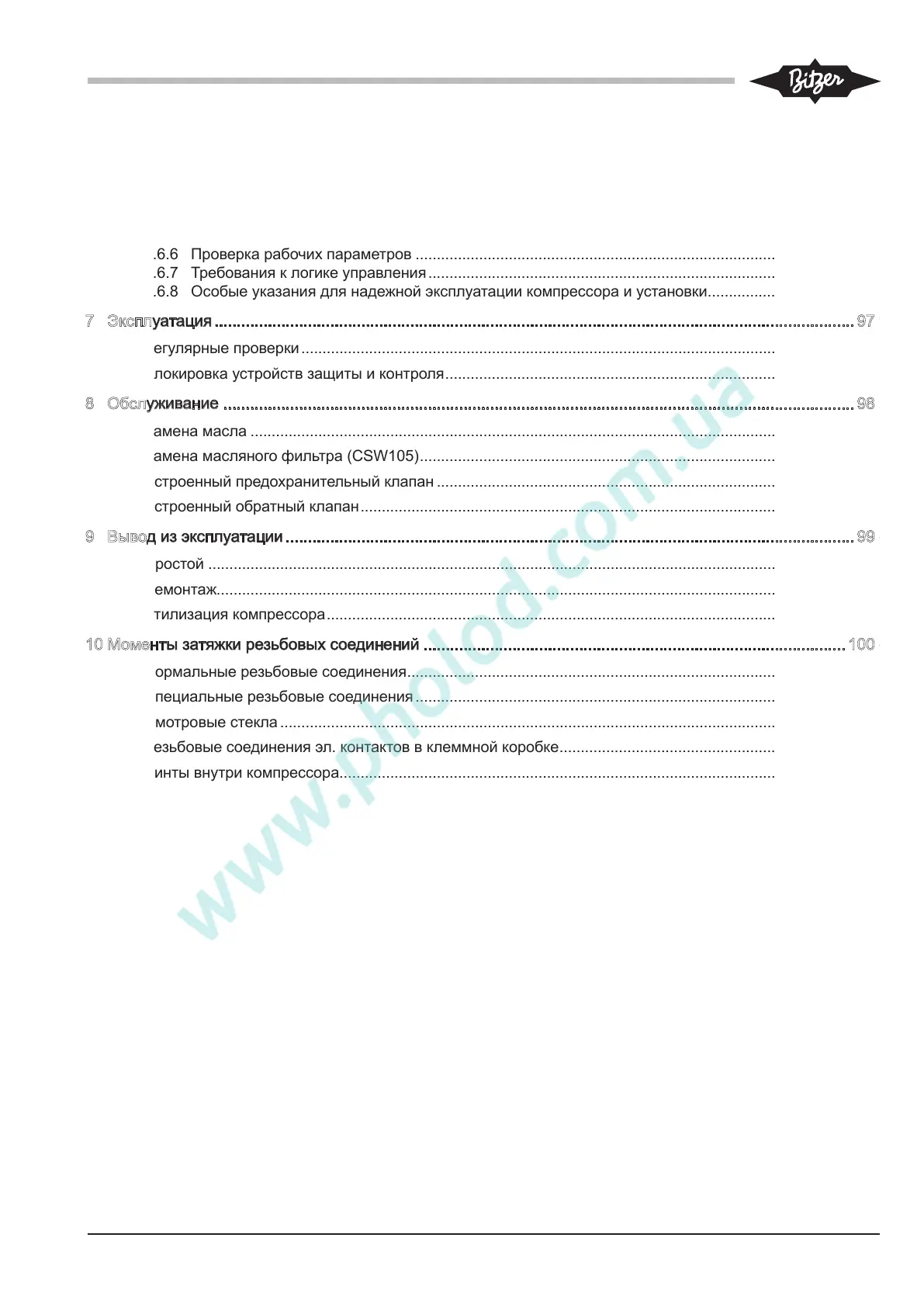 9.3 Утилизация компрессора ........................................................................................................................... 100