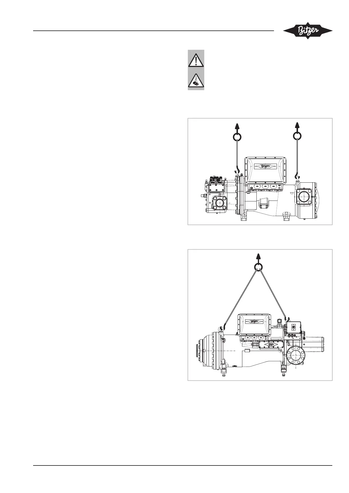 Fig.1: Standard: Lifting the compressor, two-point suspension: Ex-
