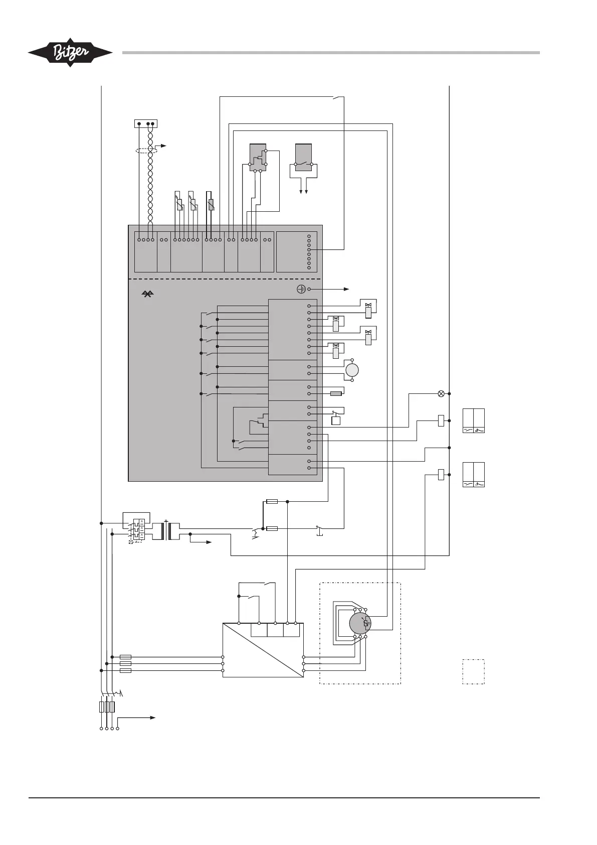 Abb.9: Prinzipschaltbild für FU-Betrieb mit integriertem STO, vollausgestatteter Verdichter ohne Leistungsregler und ohne Anlaufentlastung