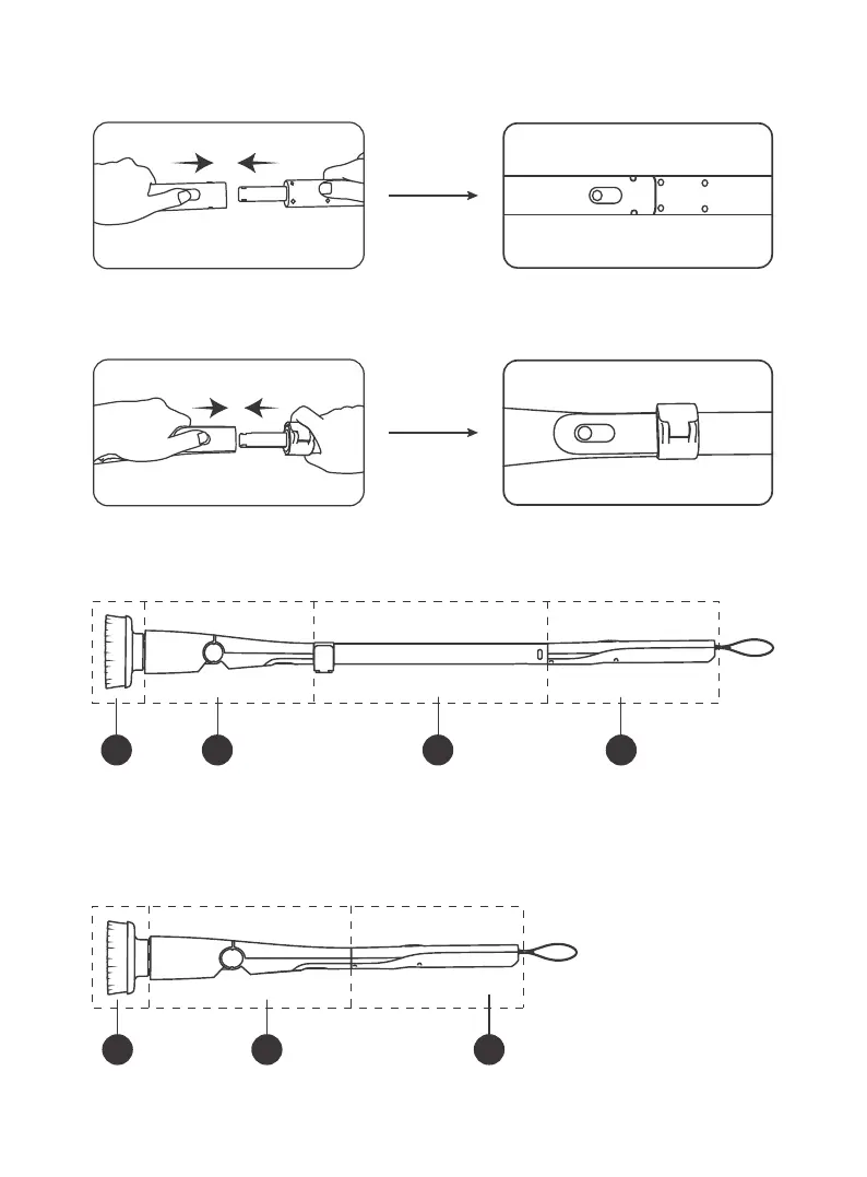 1. Connect the Main Handle to the Extension Rod until you hear a "CLICK".
