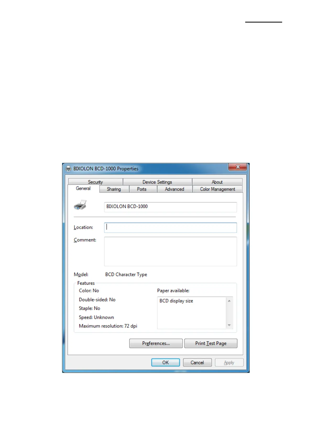 BIXOLON BCD Series - Detailed Windows Driver Configuration; Brightness Adjustment