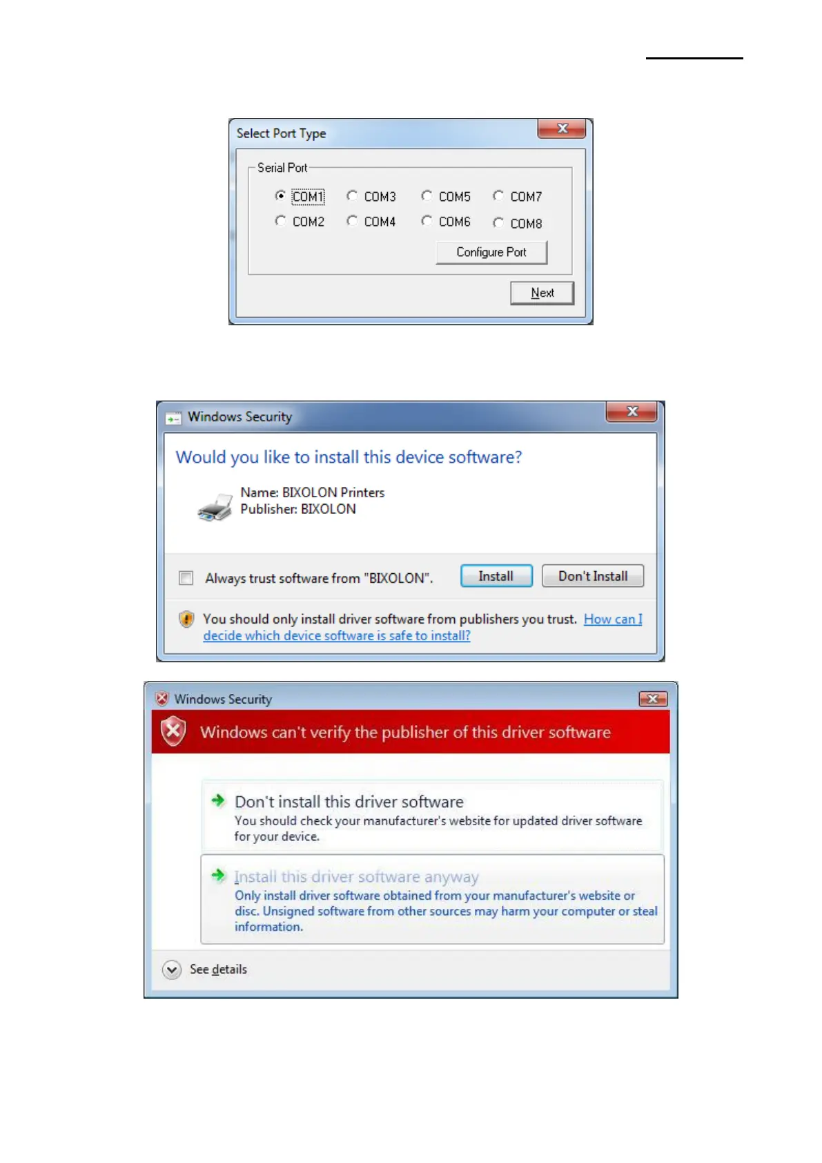 5) If the following message boxes appear, click the “Install” button or click the Install this