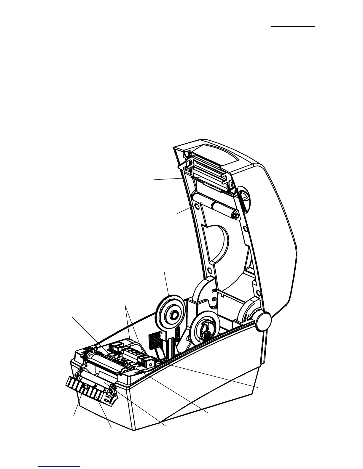 1) Open the paper cover and ribbon assembly, and remove the paper and ribbon.