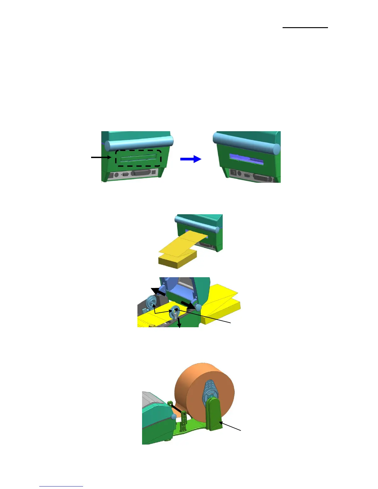 Remove the rear paper supply cover on the back side of the printer with a knife or other