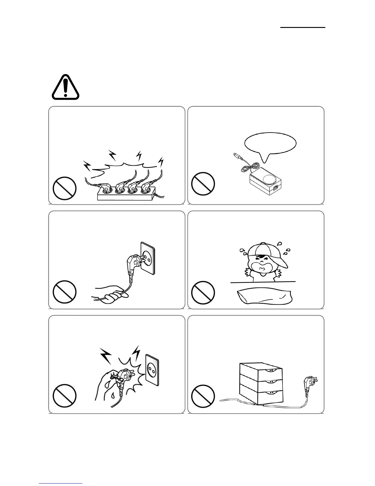 • If the plug does not fit perfectly with the outlet, do not plug in.