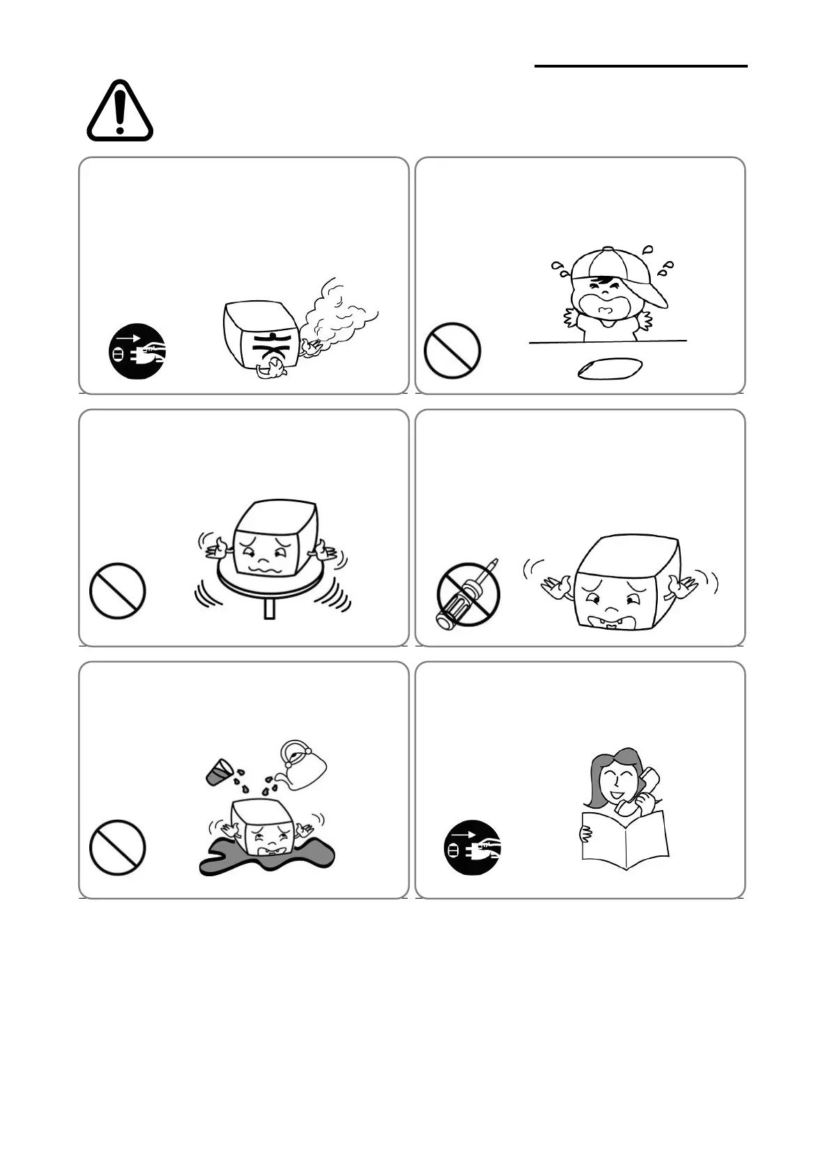 Do not let water or other foreign objects in the
