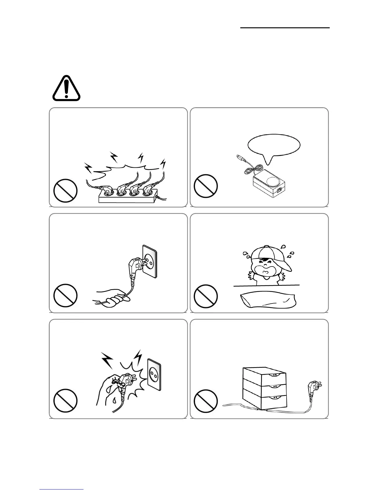 • If the plug does not fit perfectly with the outlet, do not plug in.