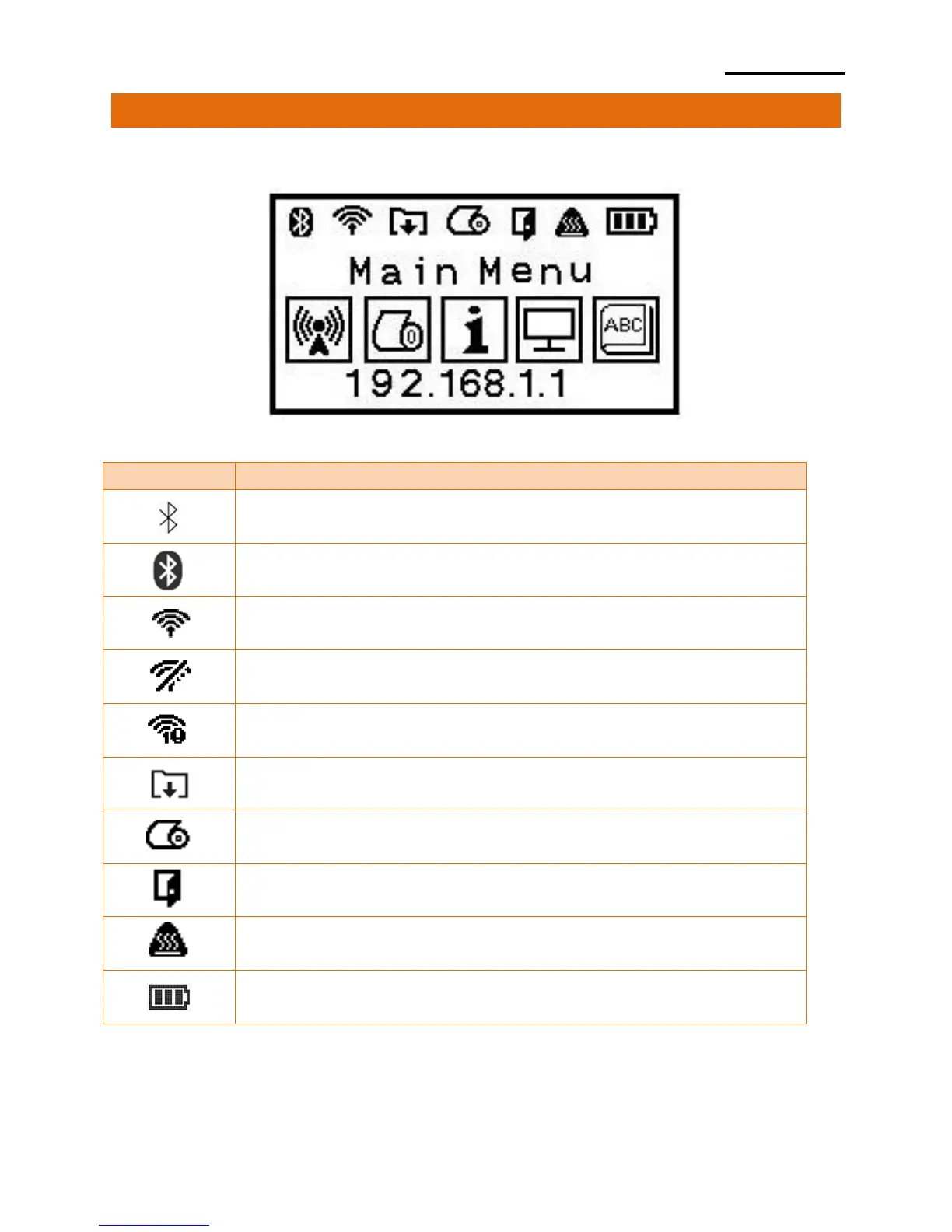 BIXOLON SPP-L3000 - LCD Menu and Status Icons; Top Icons Explained