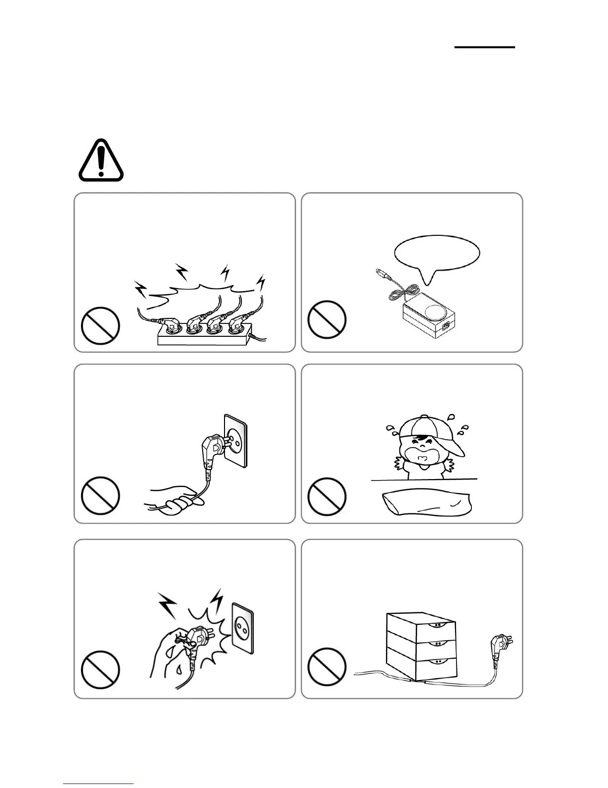 • If the plug does not fit perfectly with the outlet, do not plug in.