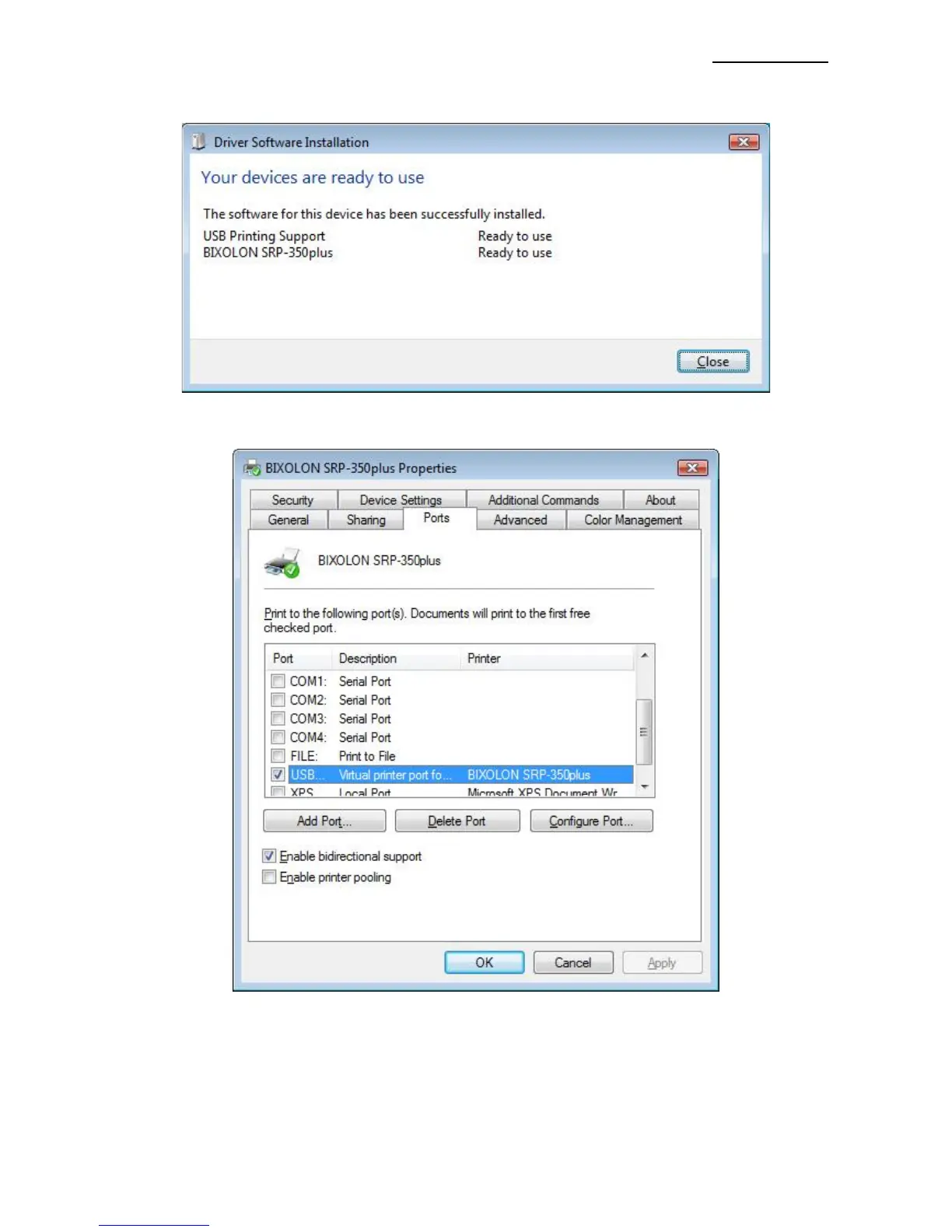 7) The USB Port setting can be confirmed in the Windows Driver properties.