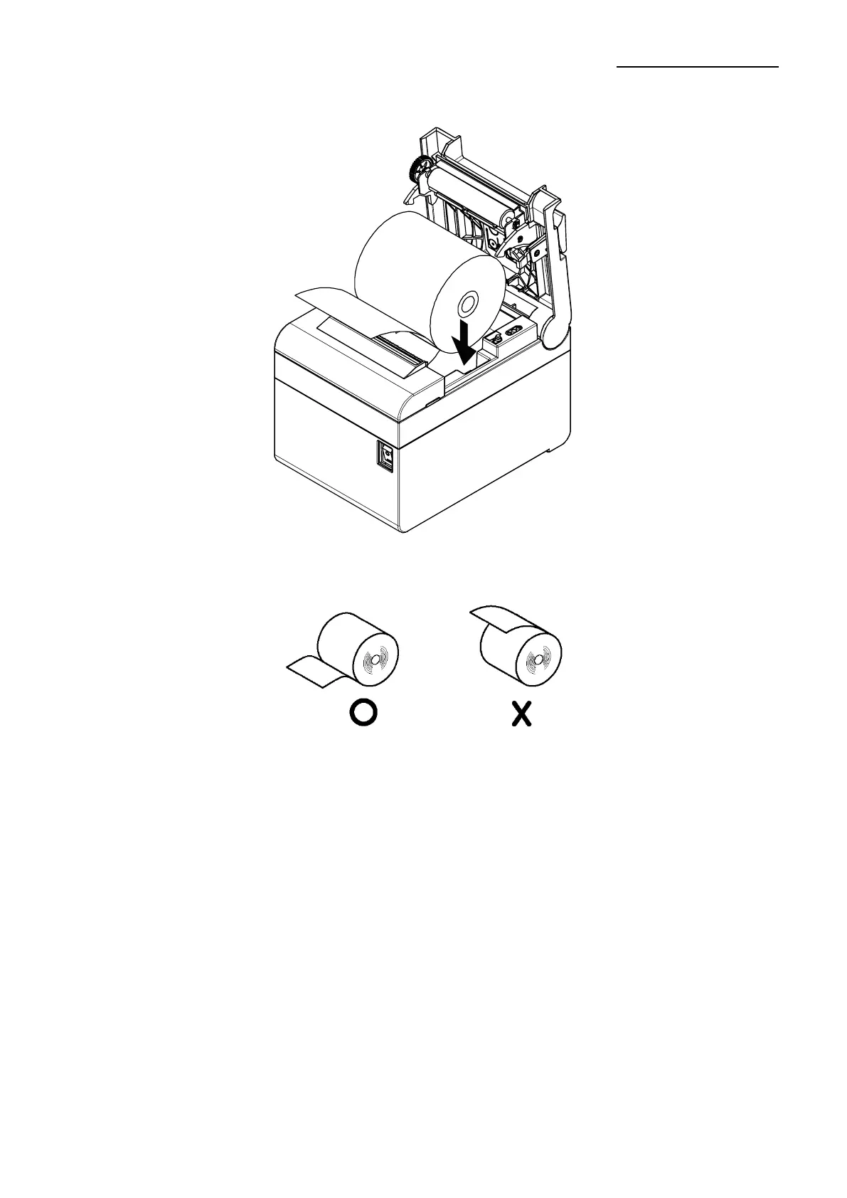 3) Check the orientation of the roll paper when inserting it into the printer.