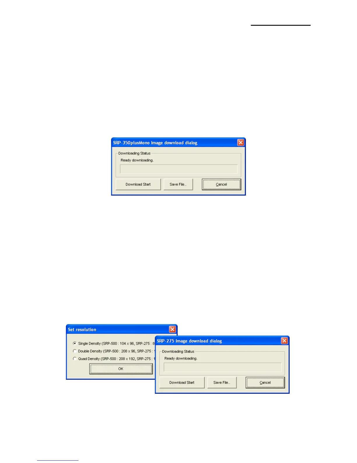 and SRP-500, the Dot Printer image download mode is entered.