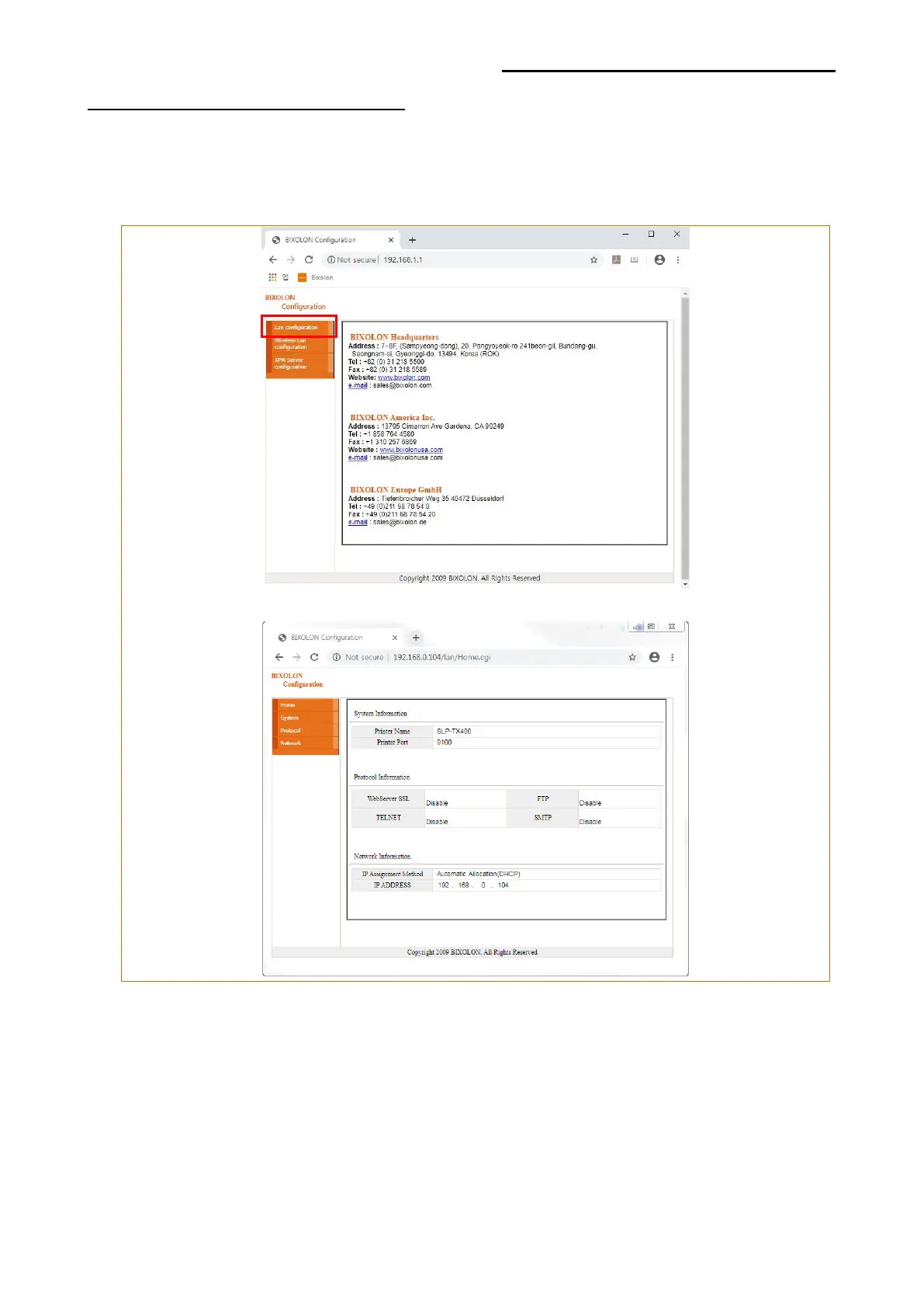 BIXOLON TX Series - Ethernet Configuration Selection