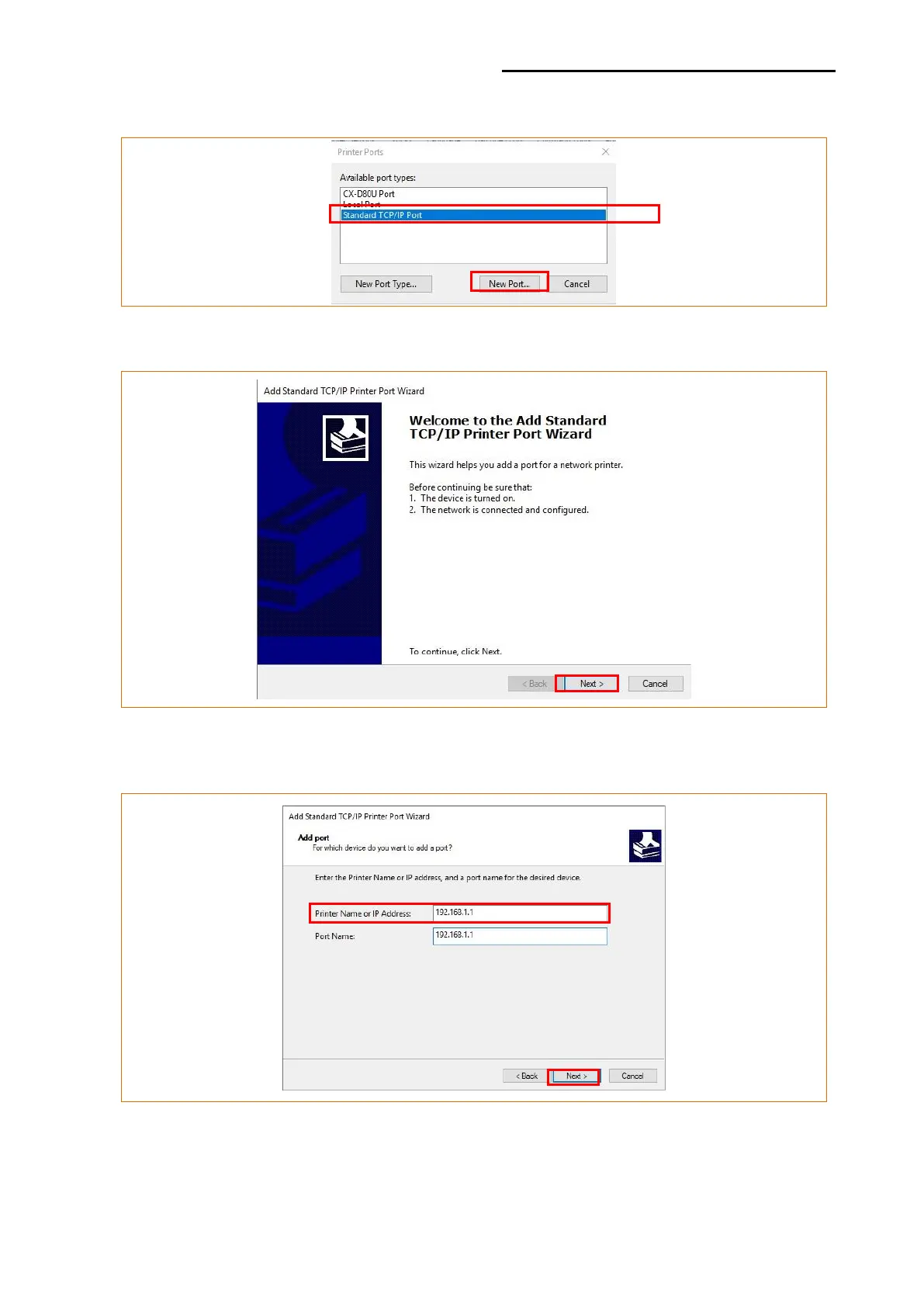 7) Click the [Next] button in the “Add Standard TCP/IP Printer Port Wizard” window.