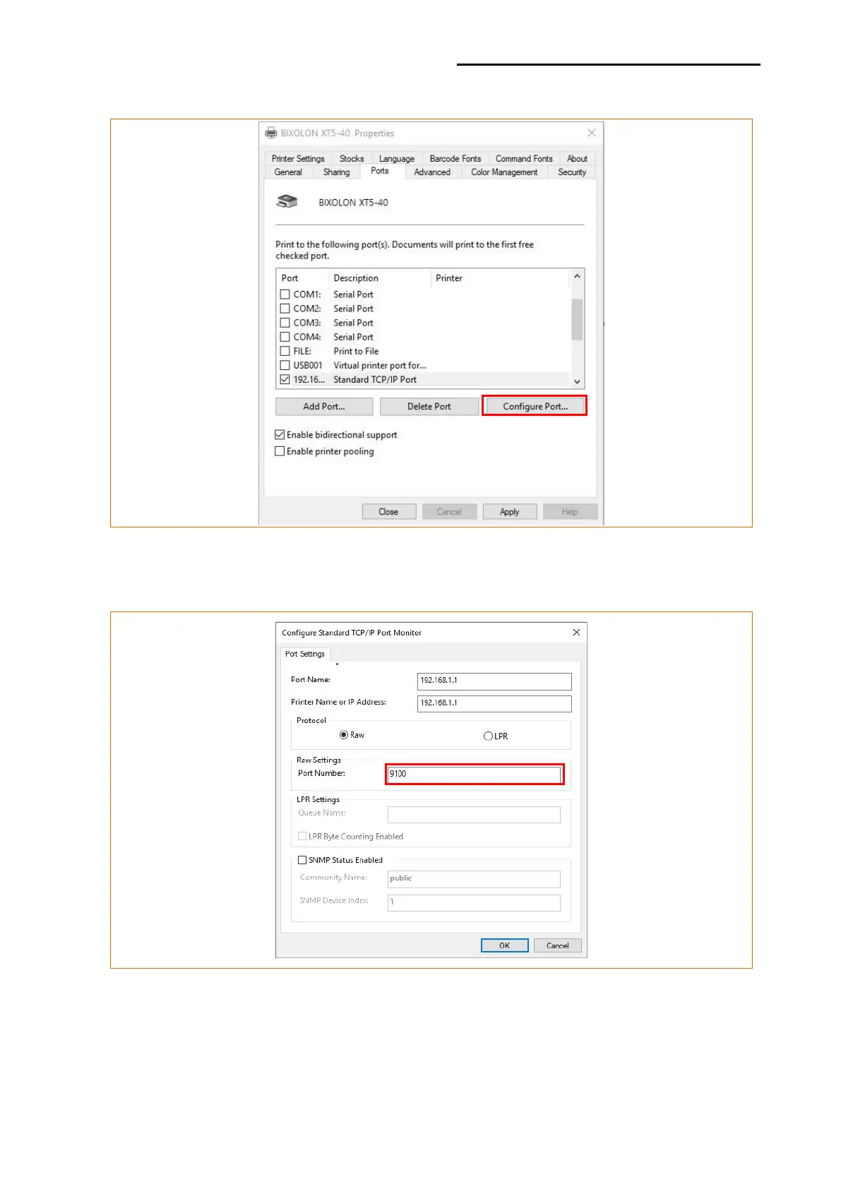 12) Click the “Configure Port...” button in the “Properties” window.