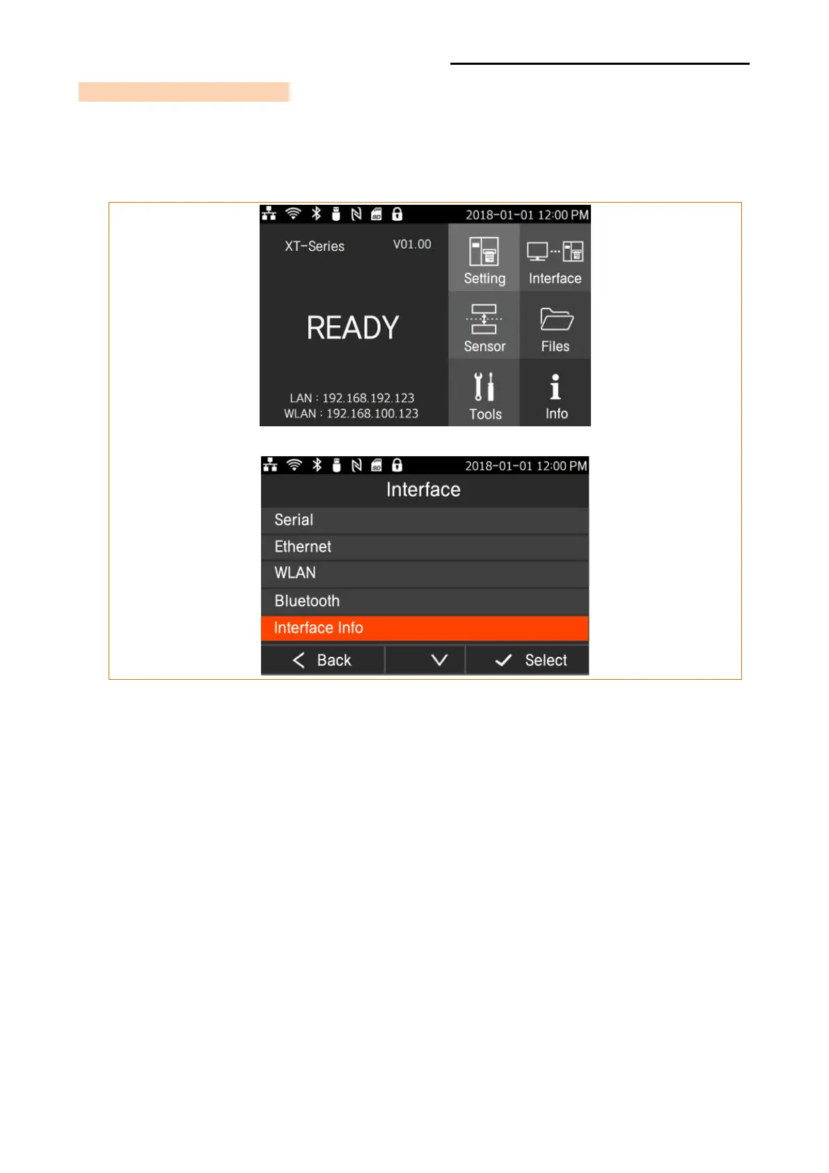 initial menu of LCD or the information can be printed out by selecting [Interface]
