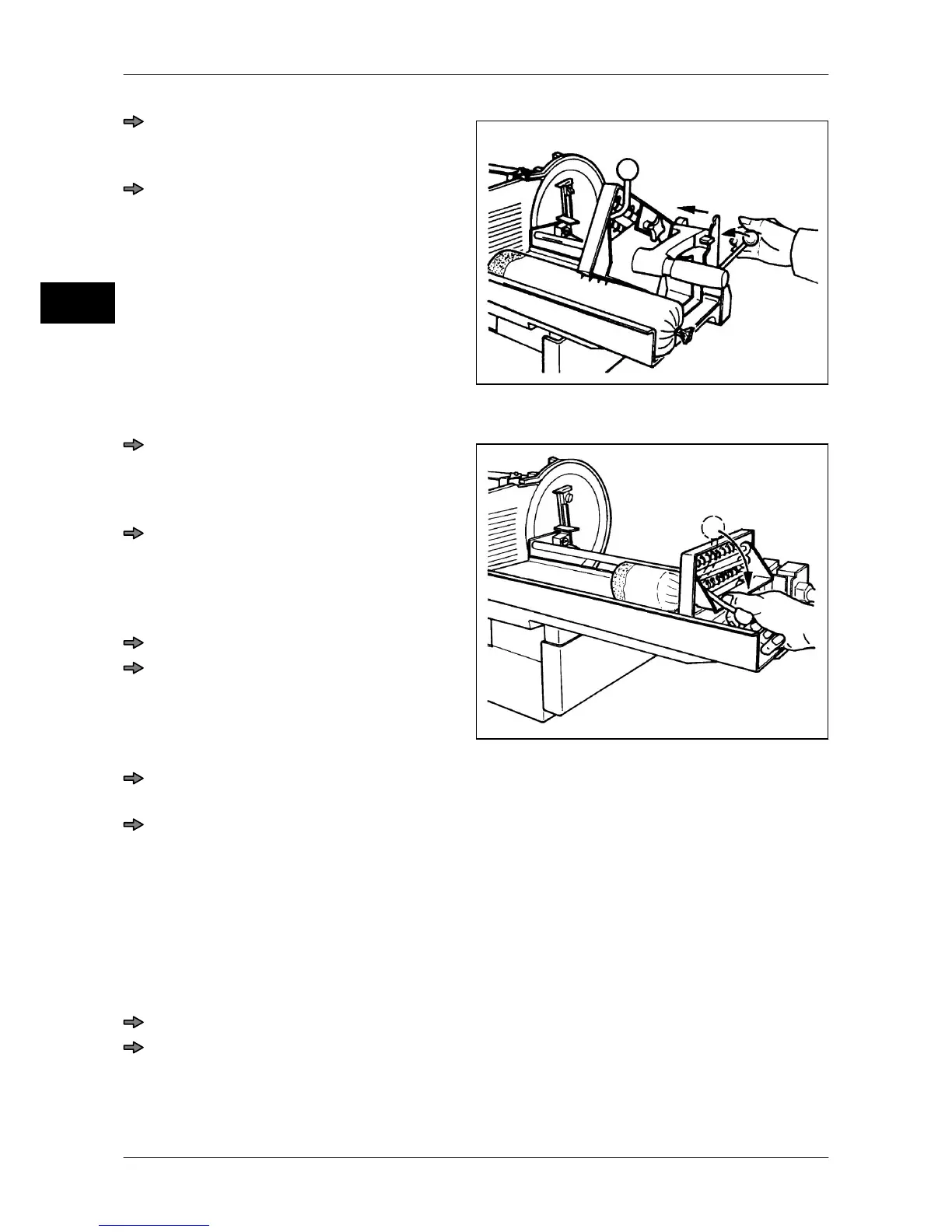 The carriage starts moving, the slices are placed on the depositing table or conveyor