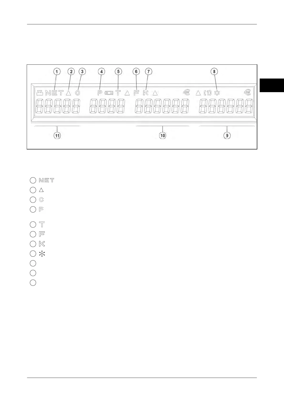 The display shows symbols, weight and price in the respective display areas.