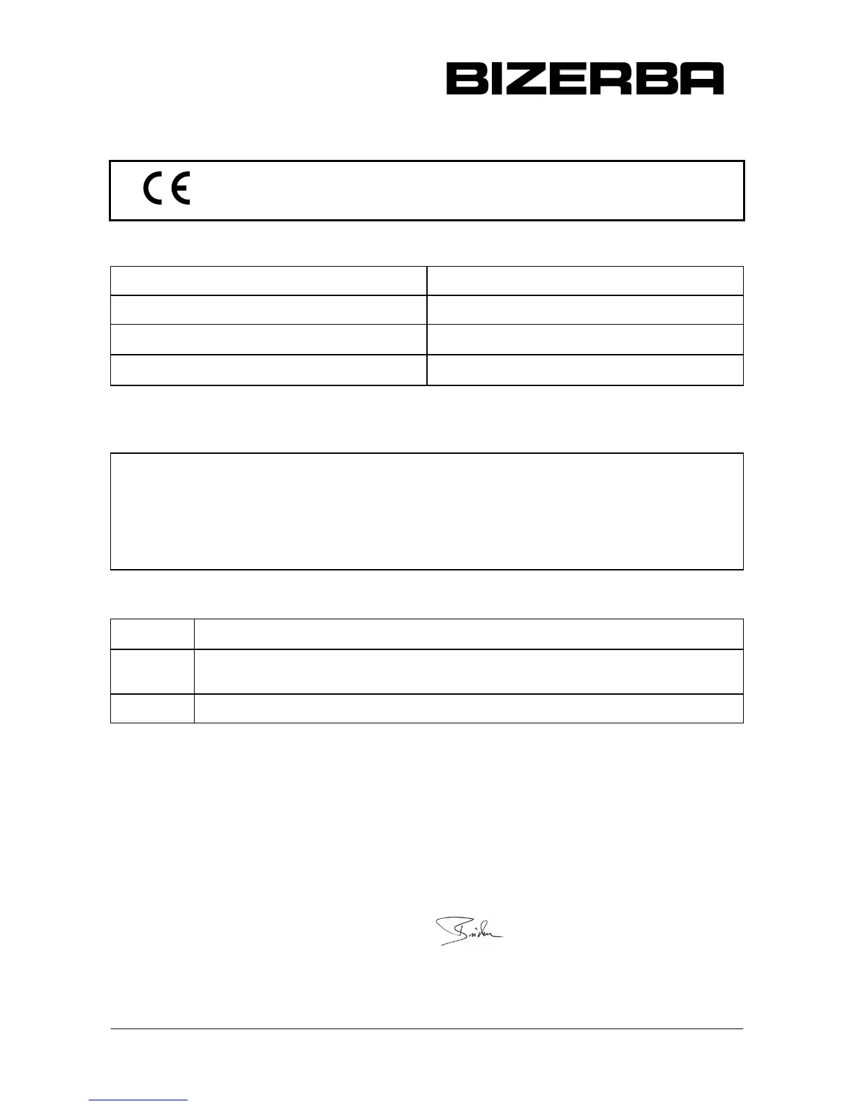 The basis for the declaration of conformity is the contract documents (Bizerba purchase
