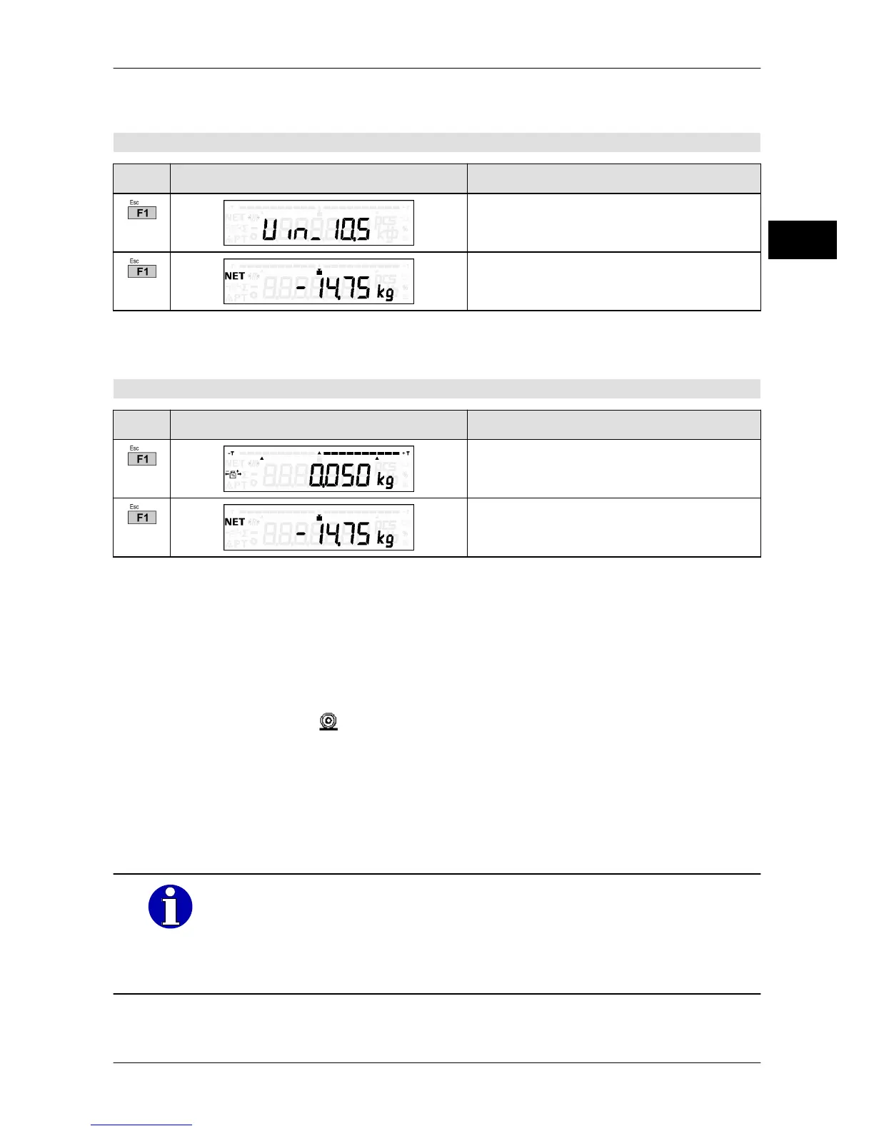 – Net weighing with tare balance, taring (fine division) with weighed