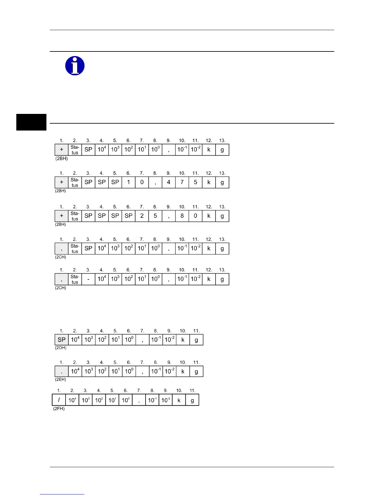 Is marked in the status byte. All decades including g and kg are marked