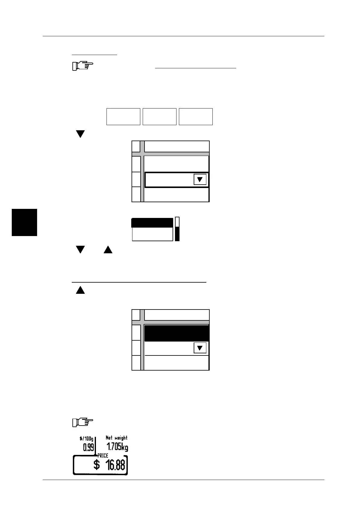unit price/kg above the unit price softkey.